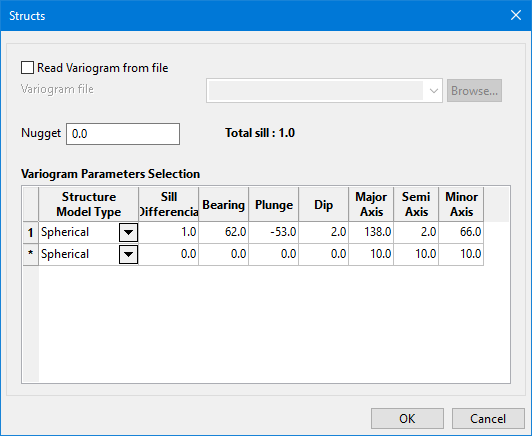 Median Indicator Kriging - Use one variogram that will be used for all cut-offs. You can use an existing variogram file or enter the parameters directly into the table, as just described above.