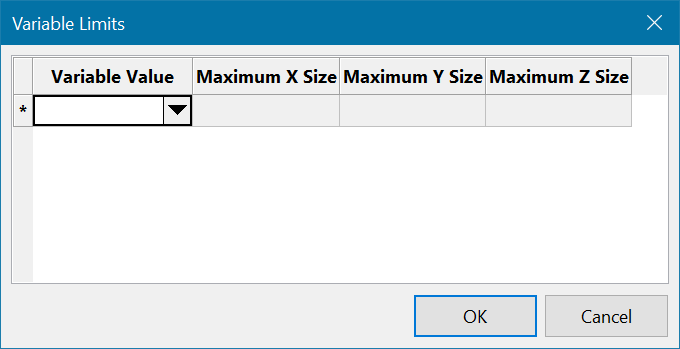 This section of the panel defines the coalescing criteria variable(s). Block size limits can be defined for each possible value of a given coalescing variable. To do this, click on the ellipses
