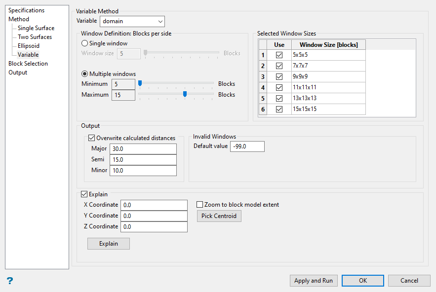 Enable this option to provide better insight into the values being calculated. The Explain file contains block values, covariance map, eigenvalues, eigenvectors, distances, orientation, and R factor (from eigenvalues).
