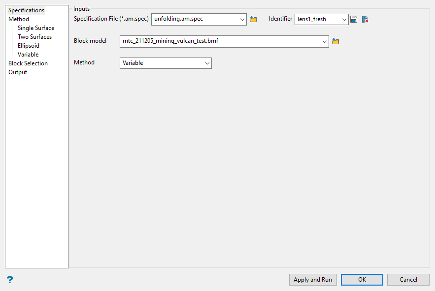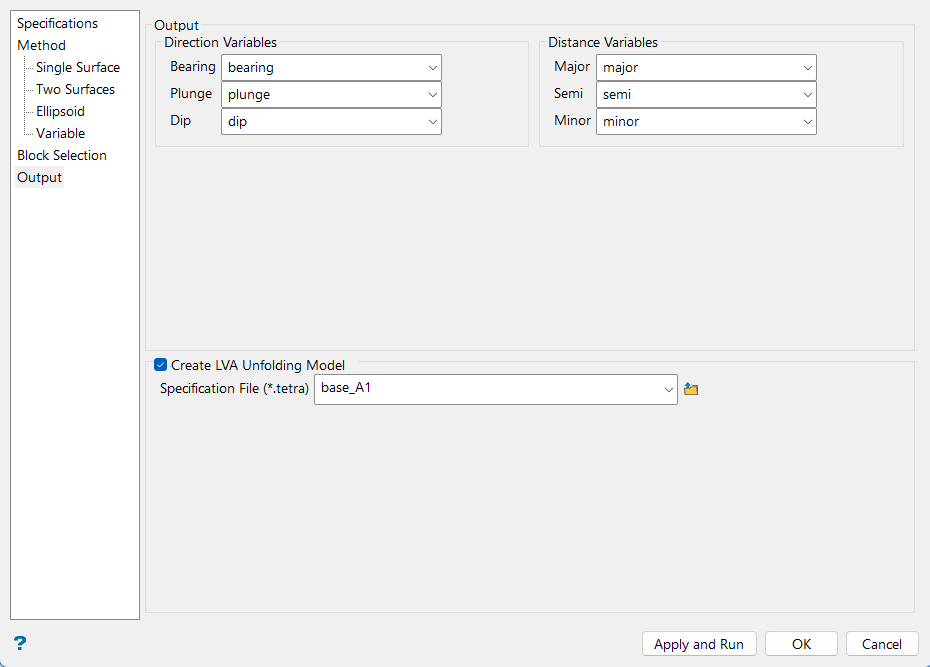 Enable this option to create an LVA unfolding model. Select the specification file from the drop-down list, or enter a name for a new one.