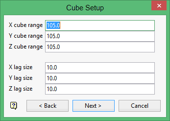For each dimension, enter the size of the cube. The size is usually in the order of the distance between samples. Making the size large puts more sample pairs into each block, but reduces the resolution.