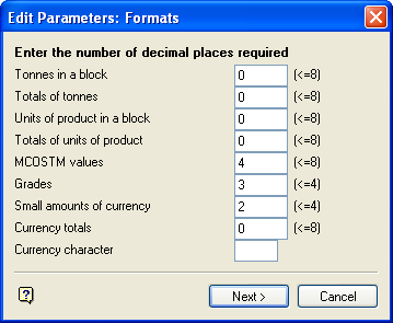 The Edit Parameters: Formats panel (line type 12) is then displayed. This panel affects the precision of other values in the parameter file and is therefore presented first.