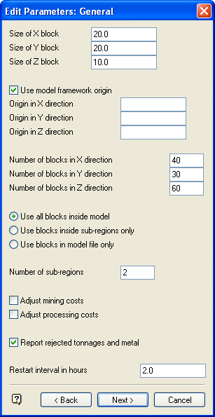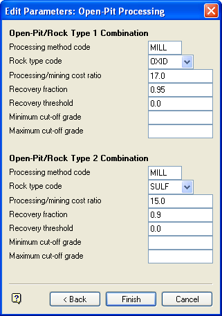 Edit Parameters: Open-Pit Processing |