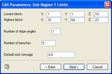 Edit Parameters: Sub-Region Limits |