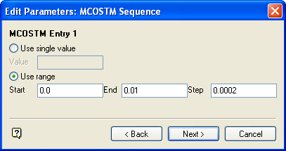 For each MCOSTM entry specify whether to use a single MCOSTM value or a range. In the case of a single value you will need to supply the value; in the case of a range you will need to supply the range and a (positive) step size.
