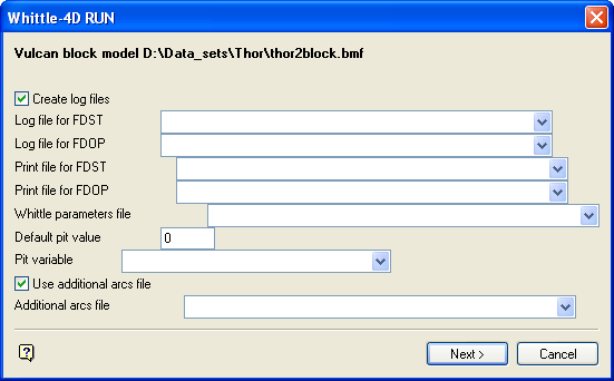 This field is only shown for irregular Vulcan models. It is the block file identifier (<bfi>) part of the block model into which Whittle results will be imported. The maximum size is 30 alphanumeric characters. Existing models can either be manually entered or selected from a list. If you select an existing model the "old" one will be overwritten.