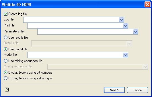 Select this option to use a results file containing the mined blocks as opposed to using a model file. The file must match the parameters file.