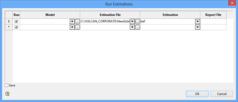 The selected estimations are run in 'top-down' order. If you chose to save the selections, then the Save As panel displays first.