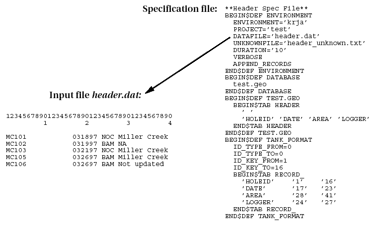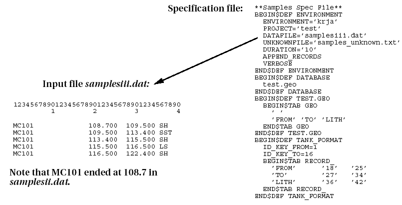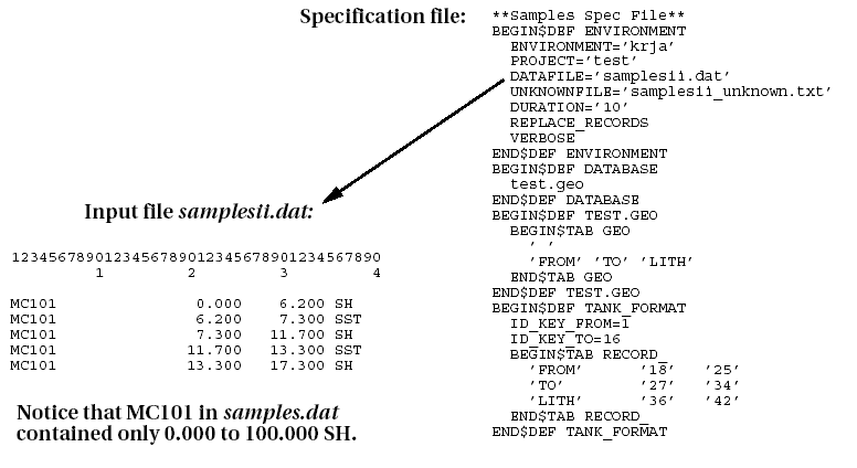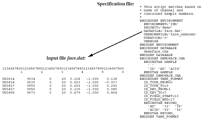 This section defines the input data file, i.e., the record type, position of fields in the file, etc.