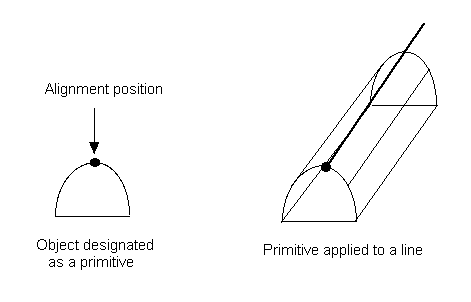 Primitives are useful when repeatedly using complex 3D designs where the shape is always basically the same. Instead of redesigning the object every time it is needed, it can be designated as a primitive and applied to any line. For example, when designing a tunnel you could create a line and then apply an arch shaped primitive.