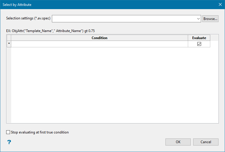 Select this option to stop the evaluation process at the first instance a condition is met. If this is not enabled, then ALL conditions will need to be met for an object to be selected.