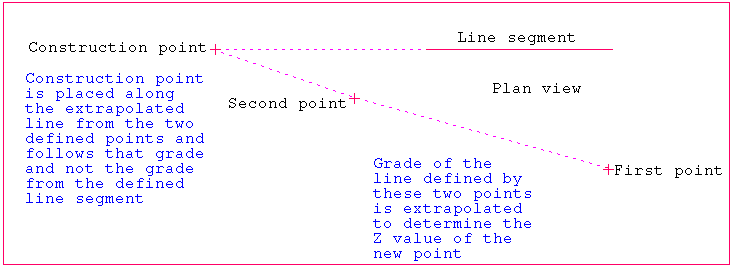 Using any of the design entry modes, digitise the two points that will define the line, which will be extrapolated to determine the Z value of the construction point.
