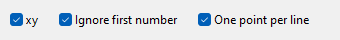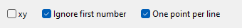 With xy, Ignore first number, and One point per line enabled, the first number(index) is ignored, the x and y values are used for X and Y, and the default Vulcan Z value (Z = 0) is used for the Z value.