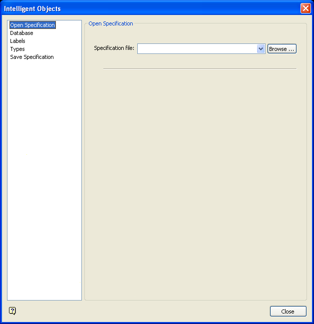 This section allows you to load the settings contained in a nominated Intelligent Objects specification file (.ino).