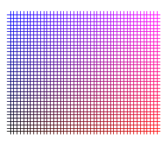Use the Colour By Attribute option to colour the X, Y, Z and W coordinate values of points in Vulcan. It is possible to colour the points by using two points, such as red and blue (in which case the low values are red, middle values purple and the high values blue see Diagram 1), or by spectrum (see Diagram 2 and 3), or by a colour channel or channels (see Diagrams 4, 5 and 6).
