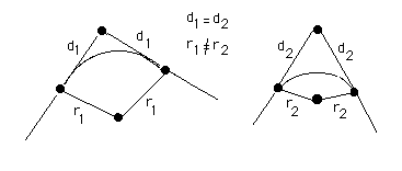 A curve is created between any two adjacent line segments in an object. When the two line segments line in the same plane, a curve is applied following one of two methods, a constant radius or a constant tangent.