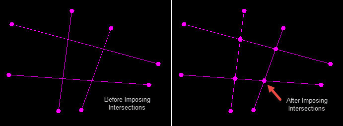 Replace a vertex by clicking on it to select it, then clicking on the screen to position a new vertex. Tip: This will reposition vertices of imposed intersections as well. Just click Impose Intersection before clicking Replace Vertex. |