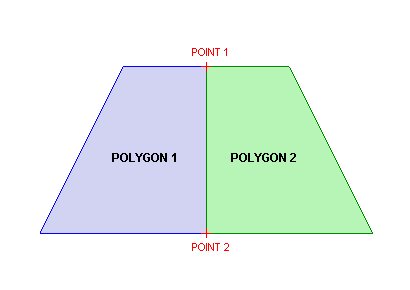 Use the Pairs option to manipulate a pair of polygons that share the same points. The Pairs option incorporates all of the Point Insert and Point Edit functions while allowing two polygons that share the same points to be manipulated at once. For example, when the first polygon is manipulated, the shared points in the second polygon will be manipulated in the same way.