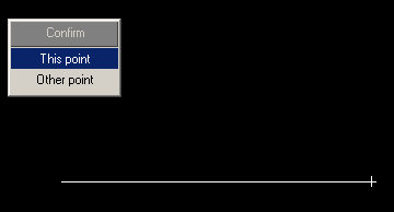 Select the line to relimit. The chosen line is highlighted, and a '+' displays at one of its end points (indicating the end that will be lengthened/shortened). You will then be asked to confirm whether or not the correct point has been selected.