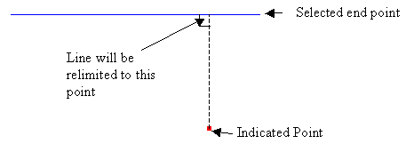 If the indicated point was not part of the line (or the line cannot be extended to include this point), then the line will be relimited such that a line drawn from the new end point of the line to the indicated point will be perpendicular to the original line.