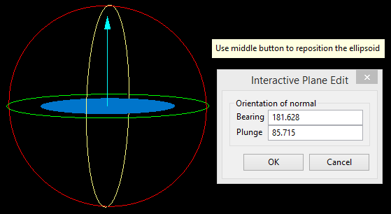 Enter the bearing and plunge angles, or click the Interactive button to select the bearing and plunge interactively.