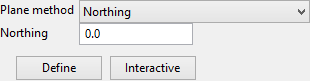 These fields show the coordinates of the origin of the plane. The origin can be defined by clicking the Define button and digitising it on screen or by entering the coordinates directly into the textboxes.