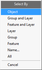 Click on an object that is part of the group and layer combination that you want to use. Click the Group and Layer combination from the Confirm menu that displays, or click Try again to select a different combination. When you are finished selecting combinations, right-click to return to the Select By menu. |