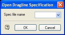 If a Dragline specifications file (.rsp) was not opened prior to selecting this option, then the Open Dragline Specification panel displays first.