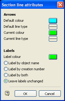 A colour can be specified for the section arrow labels. The colour is selected from the current colour table. The section arrows can be labelled by object name and/or section number.