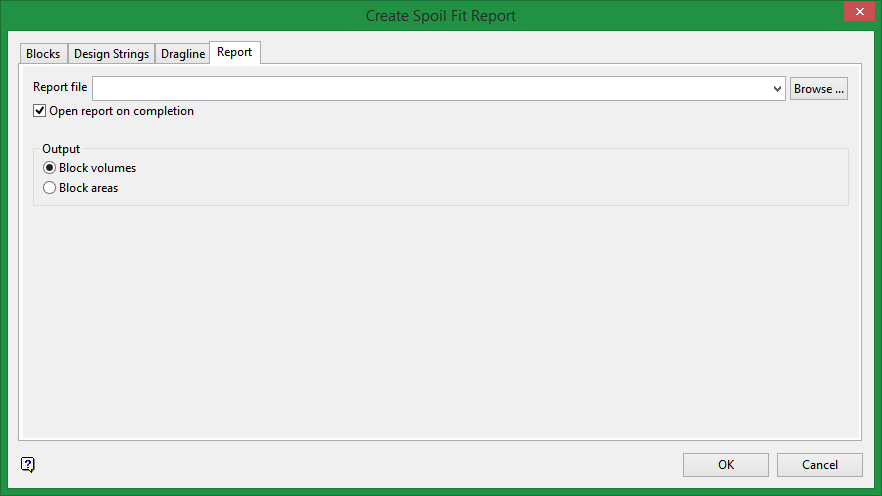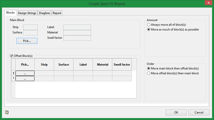 On the Dragline menu, point to Strips, then click Create Spoil Fit Report to display the following interface.
