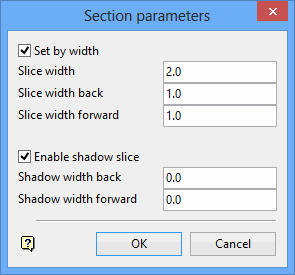 If you set the total slice width, then the back and forward slice width will automatically be set to half of this width. For example, setting the width to '40', results in the back and forward slice width both being set to 20. This means that the data shown will be the data that falls in 20 units of either side of the section line.