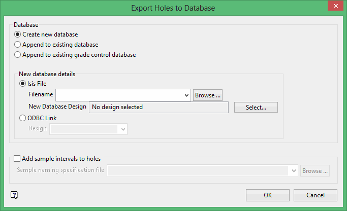 Prior to exporting the holes, a database design (.dsf) needs to be configured. If one has not been created, then you will need to do so through the Isis application. Refer to the following section for step-by-step instructions.