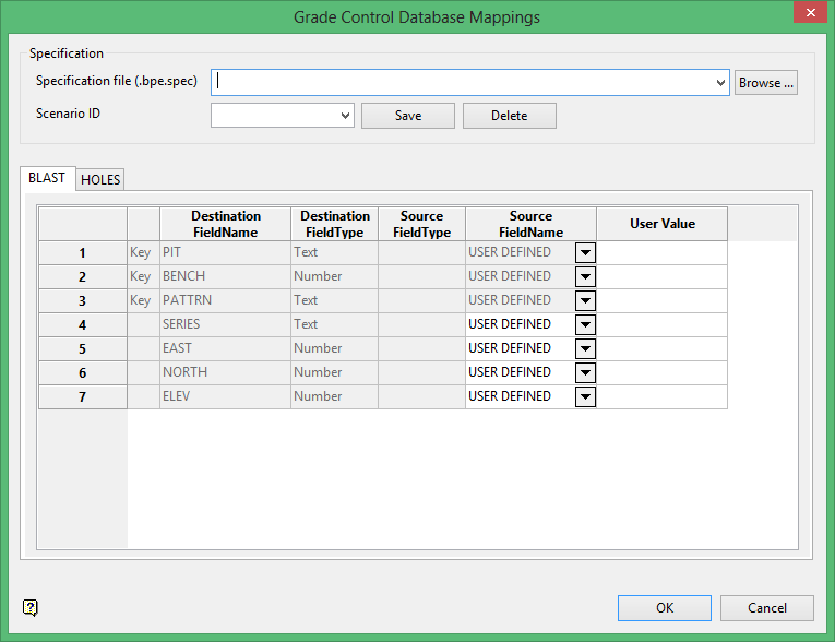 If you select Append to existing grade control database, the Grade Control Database Mappings panel will appear.
