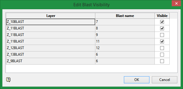 On the Drill and Blast menu, point to Edit, and then click Edit Visibility to display the Edit Blast Visibility panel.