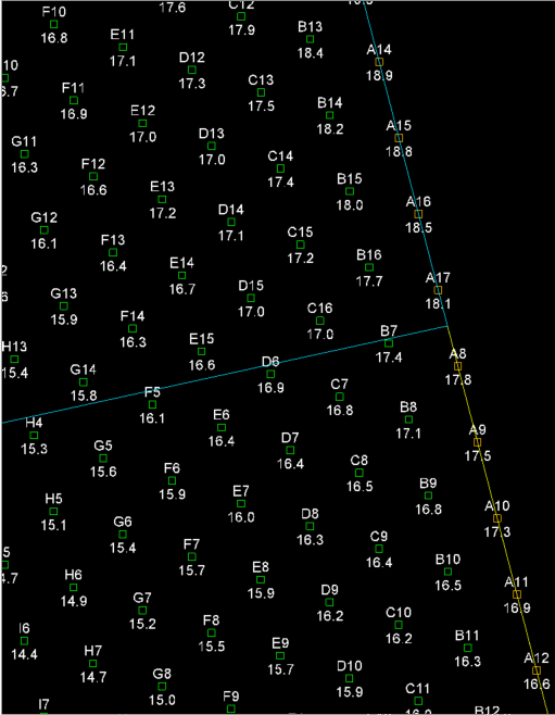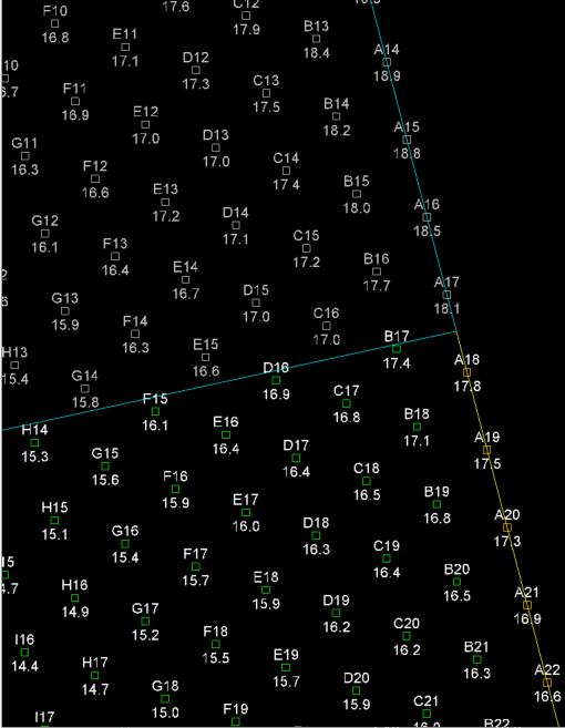 Click on the white predictive connection line between the end drillhole of one blast and its nearest neighbour along the relevant row or echelon. An extension of this connection line will then stretch as you move your mouse.
