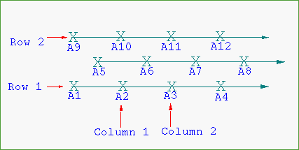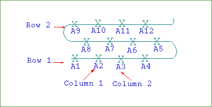 A1,A2,A3etc. You will need to specify the start row name for the first row, as well as the start hole number, that is, the number of the first hole in the row. Holes named using this method will be assigned to groups based on the row name.All holes in row A are assigned to group A, while all holes in row B are assigned to group B.