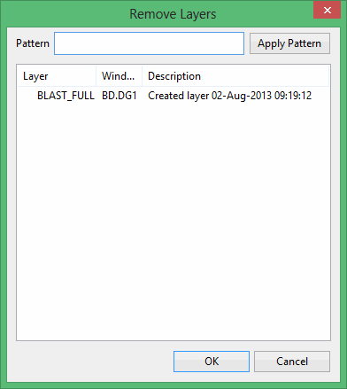 Example: If you wanted to highlight all layers that begin with S, then type S* into the pattern field and select the Apply Pattern option. Once selected, all matching layers are highlighted.
