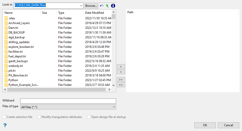 The Files of Type drop-down list will only contain the particular file type that you are trying to open (that is, block models, triangulations or grids) and selection files.