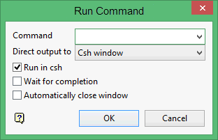 Select this checkbox to close the window when the command has completed running. This checkbox is only selectable when you have chosen to direct the output to a Csh window or the Report Window.