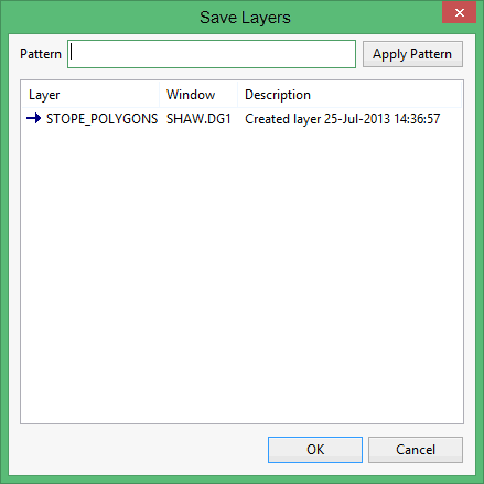 Click the layer to save and select OK. Use a left mouse click with the Ctrl and Shift keys to choose multiple entries. Once the layer(s) to save have been selected, click OK.