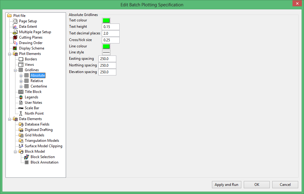 Use this section to specify the graphical attributes and spacing (intervals) of the grids.