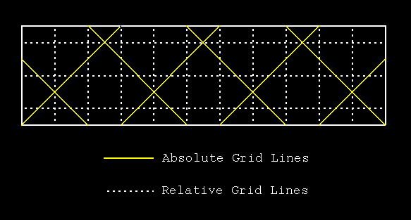 The Absolute, Relative and Centreline subsections allow you to specify the graphical attributes of the gridlines and the spacing between gridlines.