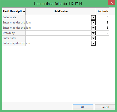 Note: If you change drafting sheets, then the User Fields button will be disabled briefly as the list of fields is retrieved from Vulcan.