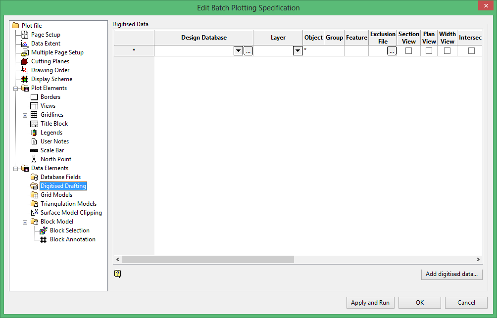 This section consists of a series of columns, which in turn may lead to additional panels. You can, however, select the Add digitised data button and use the New Digitised Data Wizard to enter the values in the appropriate columns.