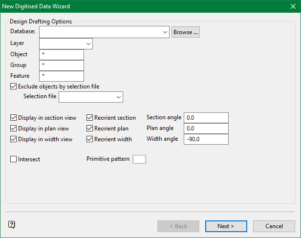 Select this checkbox if you only want to include data that is the intersection of the object, group and feature parameters. For the data to be included, it must have the specified object name, belong to the specified group and have the specified feature. If this checkbox is not selected, then data is included if it has one or more of the specified criteria.