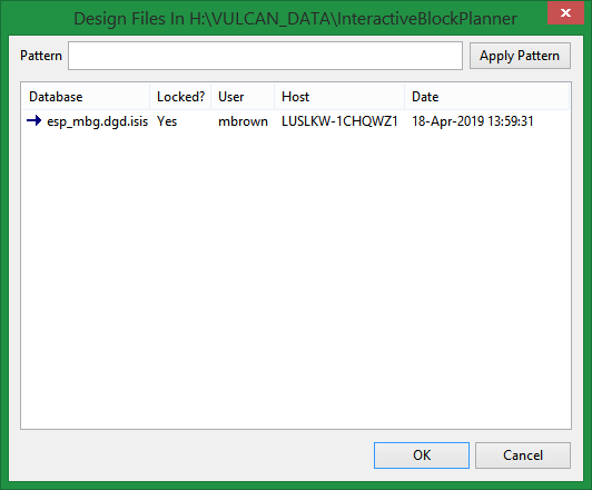 It is also possible to use the Pattern field, the Apply Pattern button and wildcards (* multi-character and ? single character) to highlight the design databases that begin or end with certain characters.