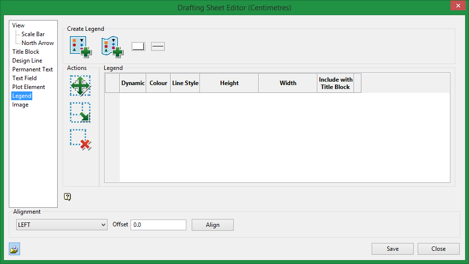When digitising the static legend you will only have control over the height, so you will only see a vertical line when you draw in the drafting sheet.