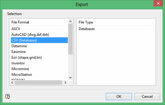 Click CSV (Databases) in the File Format column on the left.