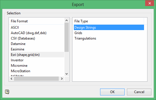 Click Esri (shape, grid, tin) in the File Format column on the left.