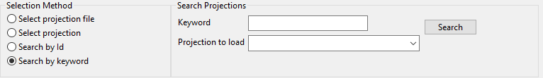 Enter a keyword fro the search projection, or search for it by clicking the Search button. Then select the projection using the drop-down list.